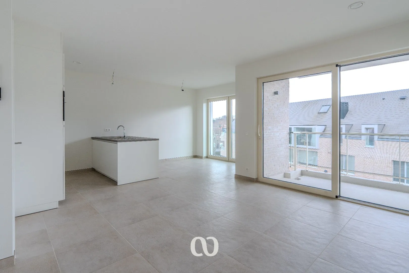 Dit energiezuinige appartement beschikt over een inkomhal met gastentoilet, een ruime leefruimte met open keuken en toegang tot het terras.