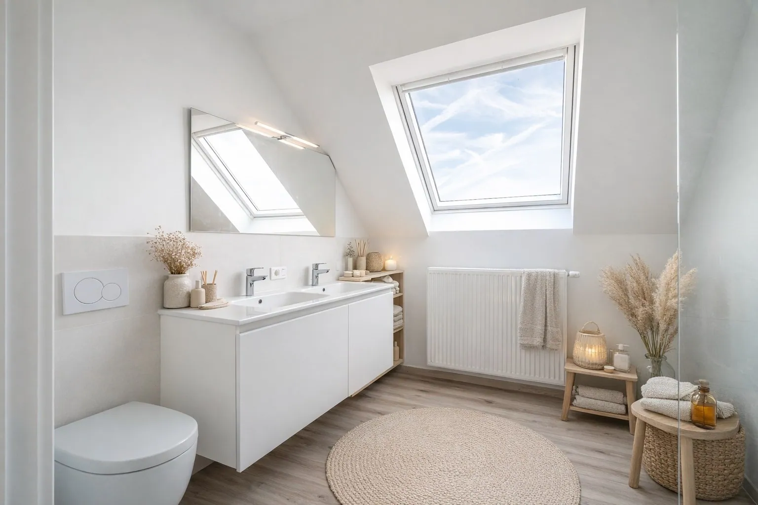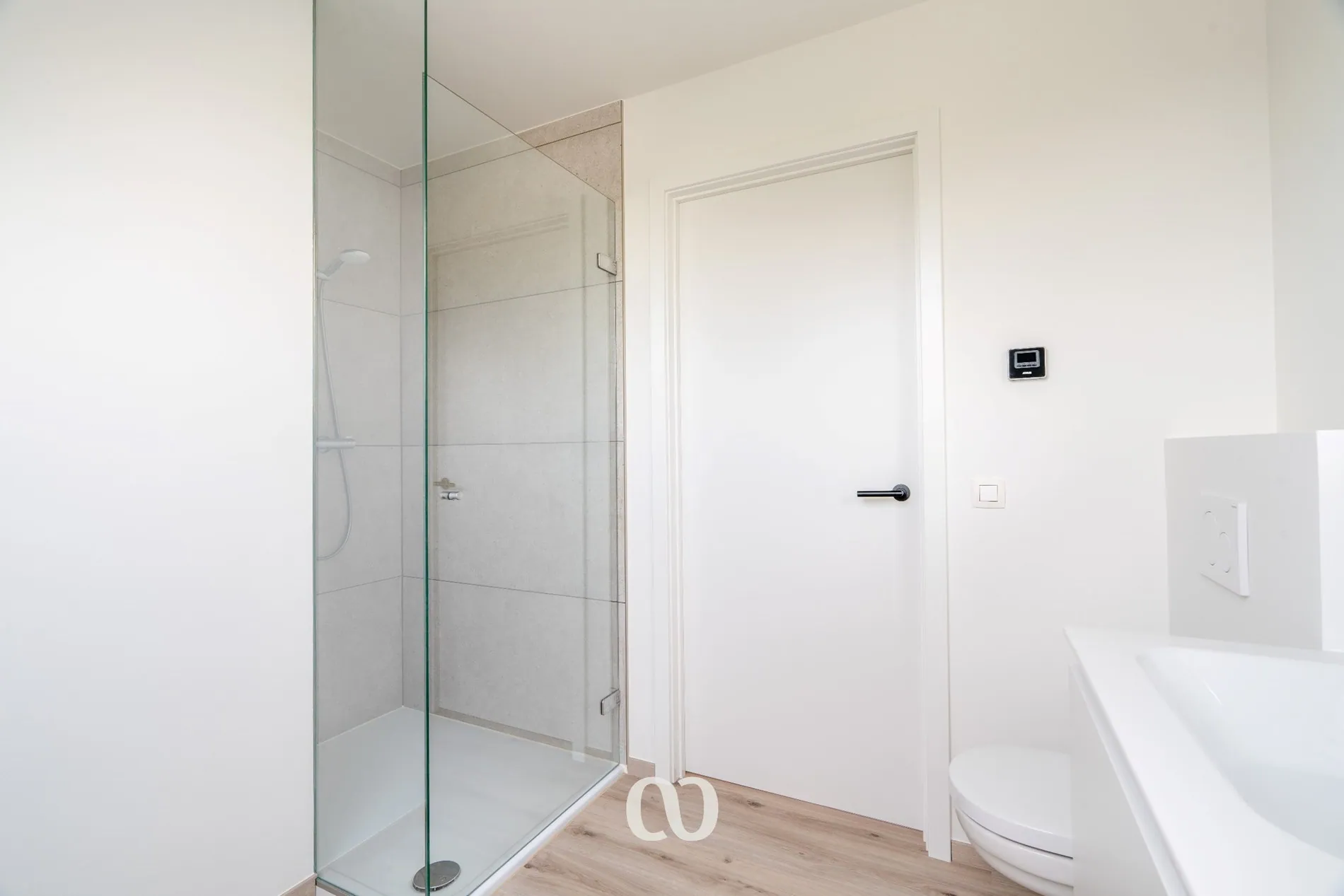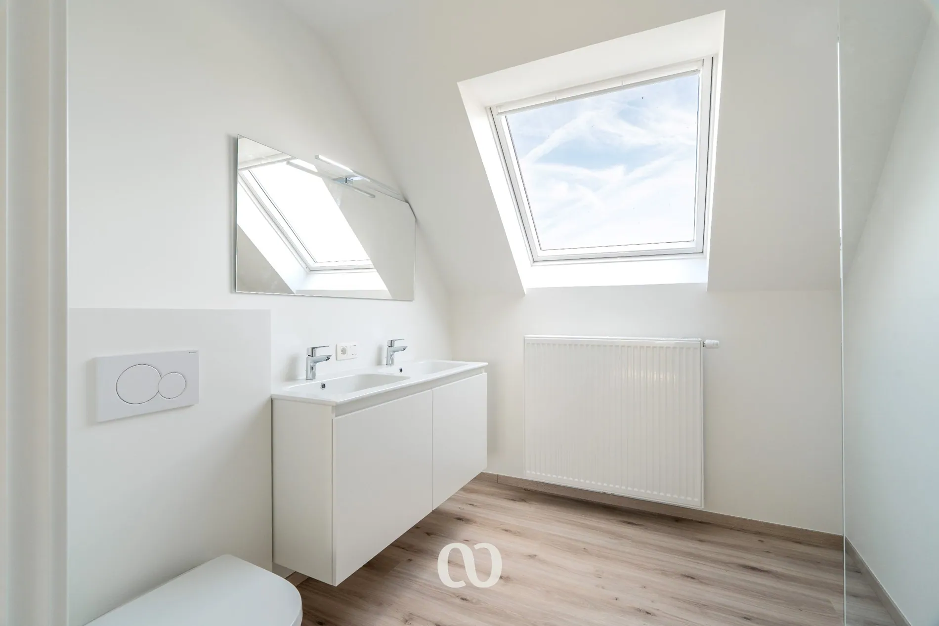 - Moderne badkamer met inloopdouche, dubbele lavabo en toilet