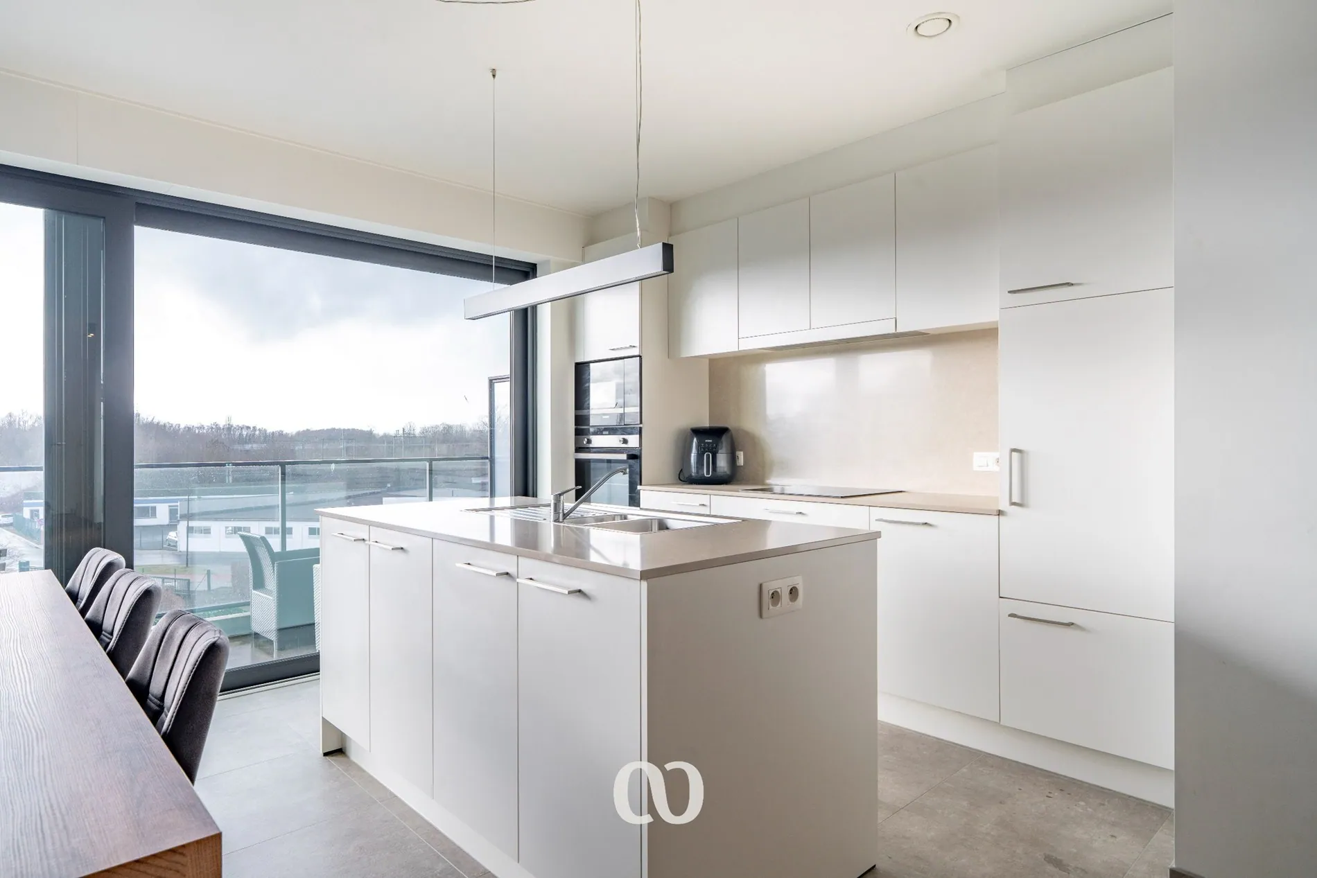 De ruime en lichtrijke leefruimte vormt het hart van het appartement en sluit naadloos aan op de moderne open keuken, volledig uitgerust met alle hedendaagse toestellen. Ideaal voor wie graag kookt én geniet. Vanuit de leefruimte heb je toegang tot het zuidwestgericht terras, waar je volop kan ontspannen en genieten van de namiddag- en avondzon.