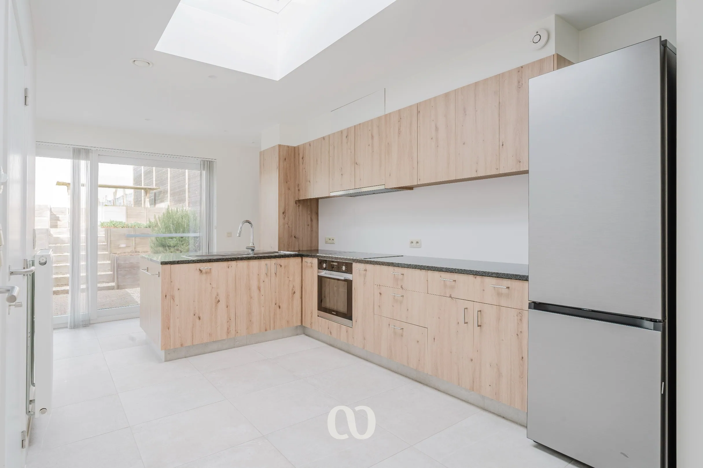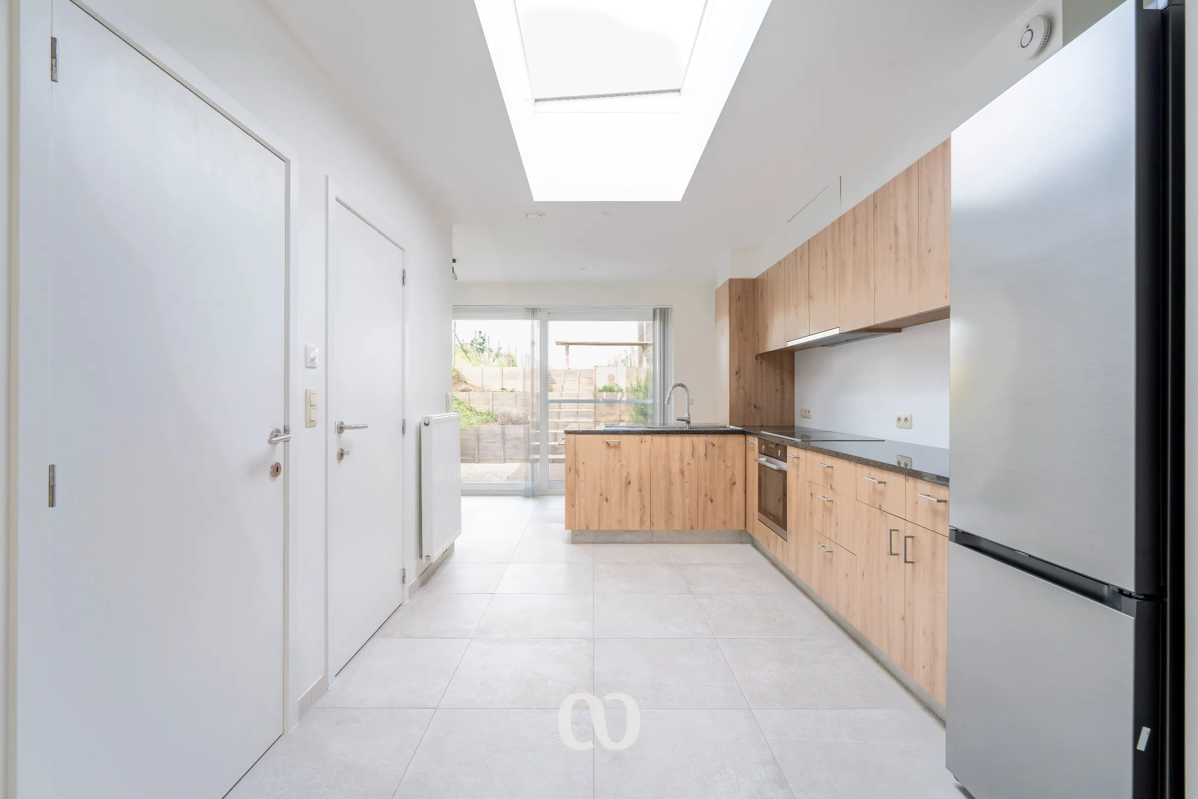 Je komt de woning binnen via de inkomhal. Van hieruit heb je toegang tot de ruime en lichtrijke leefruimte die overloopt in de open keuken. Daarnaast is er nog een aparte bureauruimte die perfect kan dienen als extra zithoek of werkruimte. Verder beschikt het gelijkvloers over een gastentoilet en een technische berging.