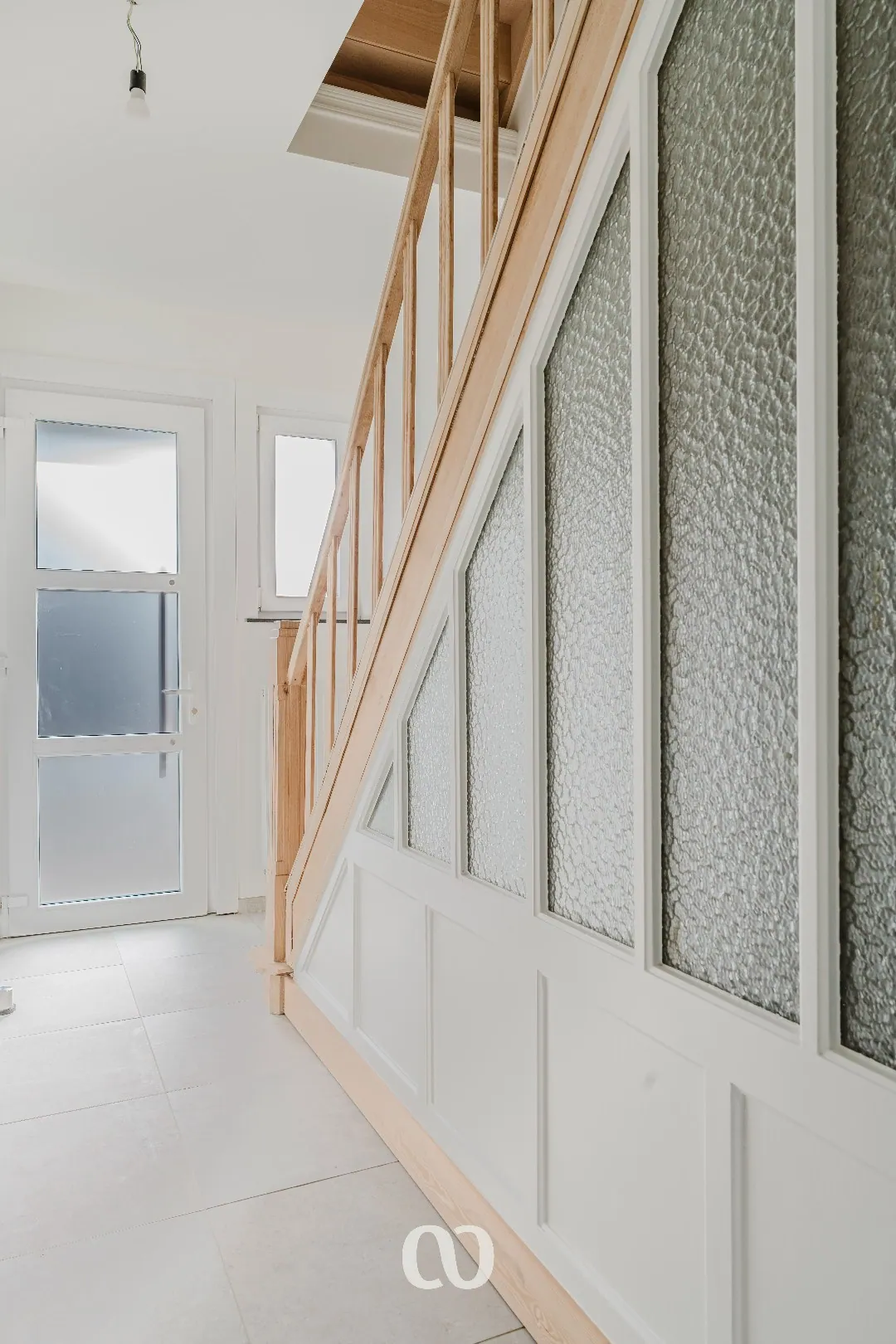 Op de eerste verdieping kom je boven in de nachthal. Van hieruit heb je toegang tot de afgewerkte badkamer en twee slaapkamers.