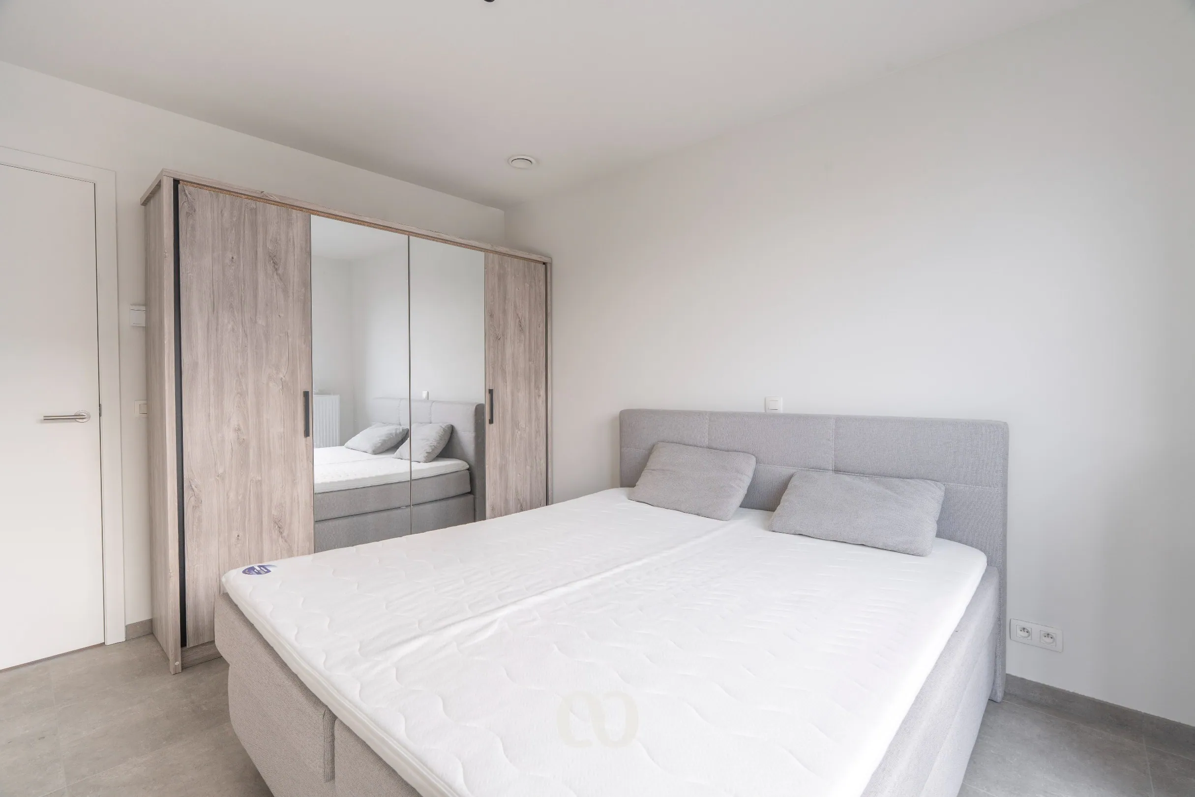 Het appartement beschikt over twee slaapkamers: een volwaardige master bedroom en een tweede, kleinere kamer die perfect dienst kan doen als kinder-, logeer- of bureauruimte. Daarnaast is er een aparte berging voorzien voor wasmachine, droogkast en poetsmateriaal.