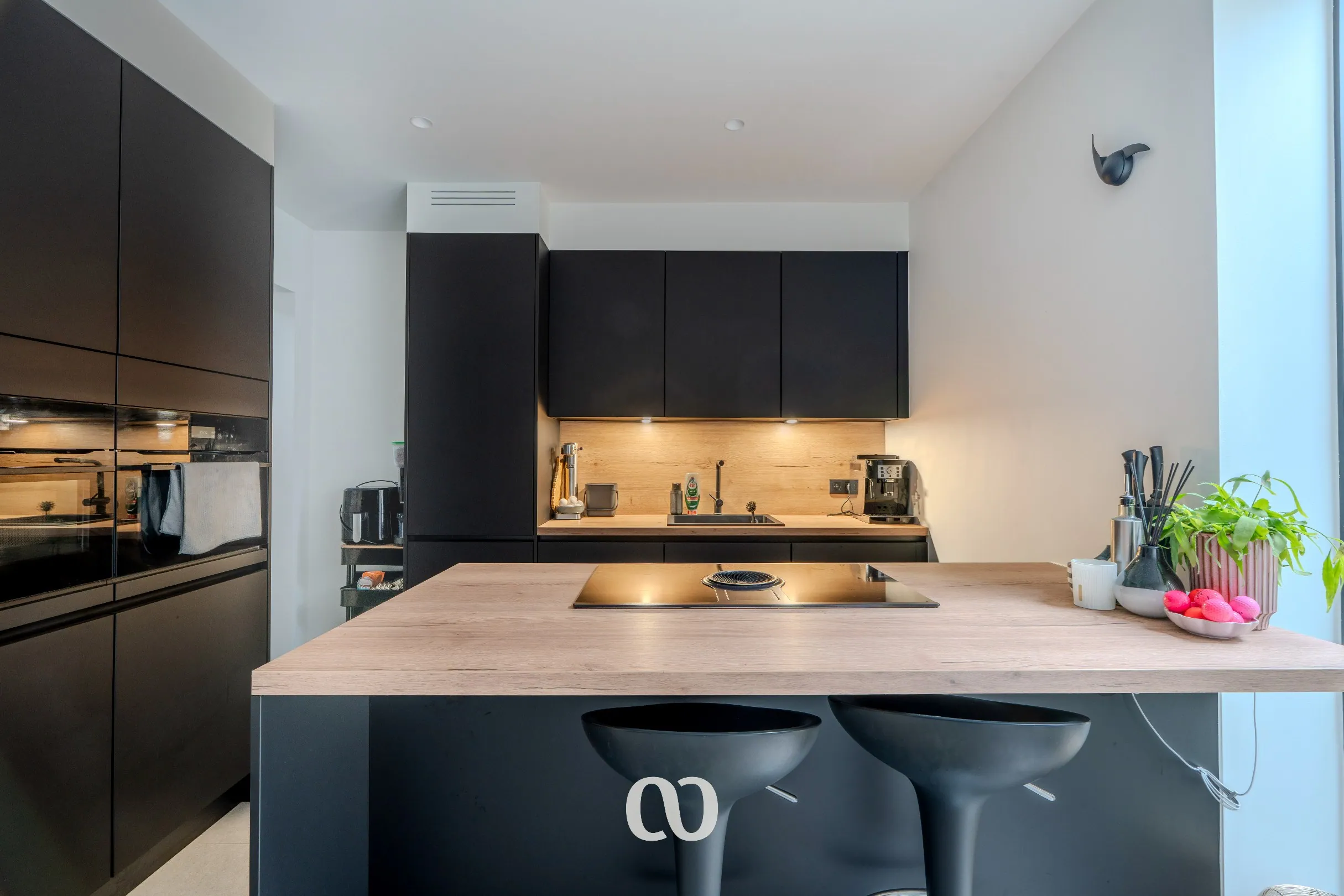 Bij het binnenkomen word je verwelkomd in een moderne en hedendaagse keuken die volledig is voorzien van alle nodige toestellen. De gezellige open leefruimte die baadt in natuurlijk licht en vormt het kloppend hart van de woning. Koken, tafelen en ontspannen vloeien hier moeiteloos in elkaar over.