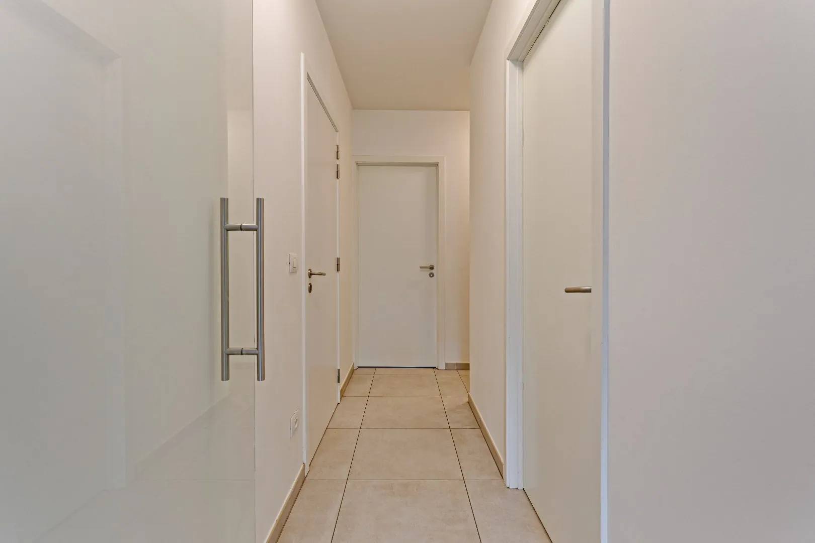 Na binnenkomst via de inkomhal betreed je de open living en keuken, waar natuurlijk licht overvloedig aanwezig is. Verder beschikt het appartement over twee volwaardige slaapkamers, een uitgeruste badkamer en een gastentoilet.