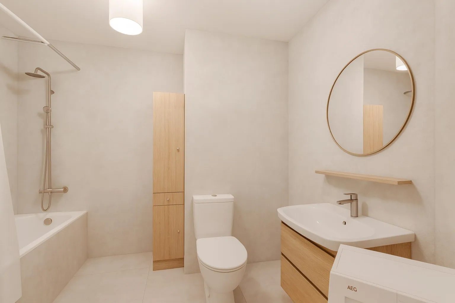 Je komt het appartement binnen via de inkomhal. Van hieruit heb je toegang tot de open living met keuken, de slaapkamer en de badkamer.