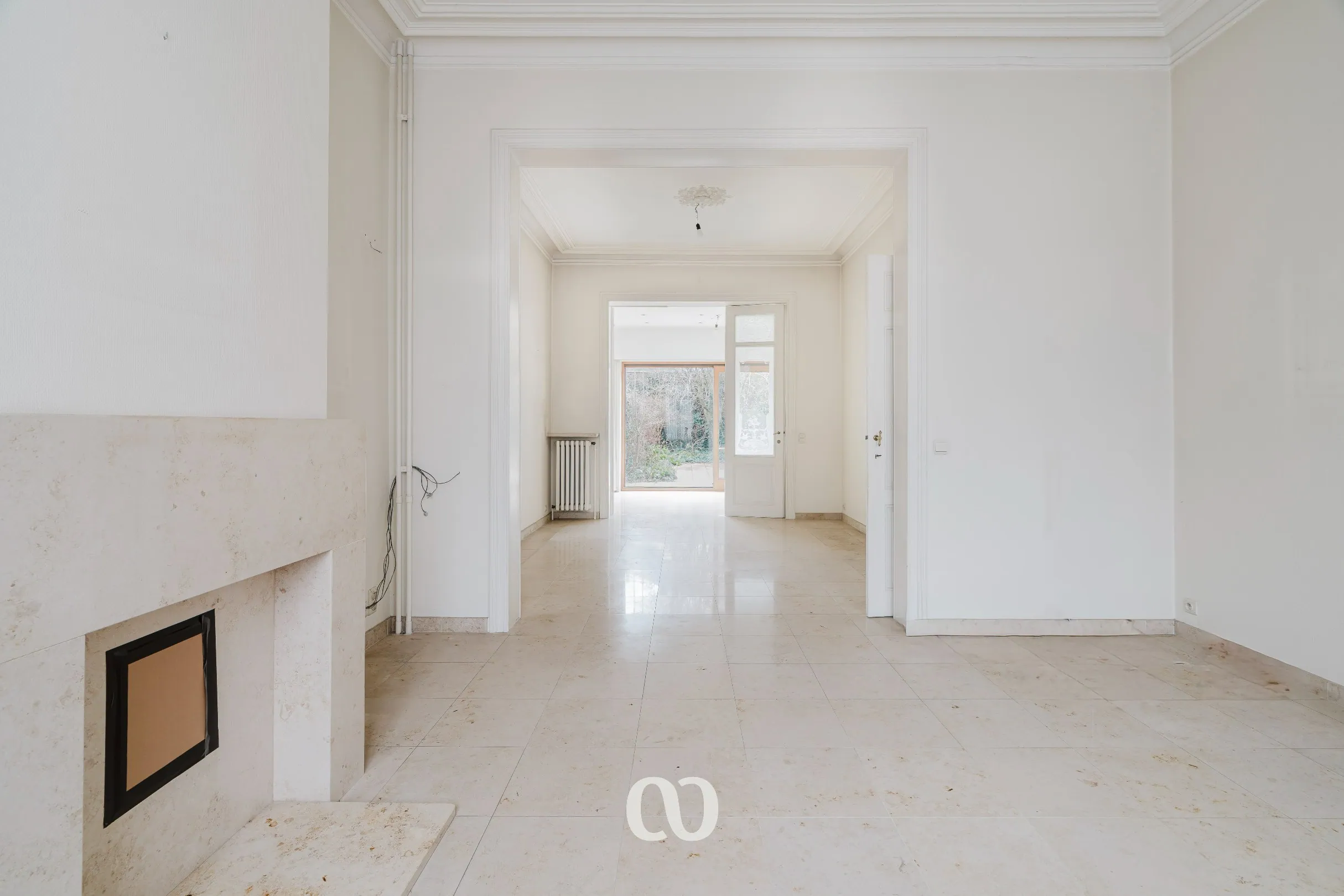 Je komt binnen via een imposante inkomhal die meteen de toon zet. Van hieruit bereik je de ruime en lichtrijke leefruimte die zich uitstrekt tot achteraan de woning en uitkijkt op de tuin. Aansluitend bevindt zich de keuken. Daarnaast is er op het gelijkvloers nog een aparte, grote kamer die perfect kan dienen als bureau of bibliotheek. Verder zijn er een gastentoilet en een praktische wasplaats.