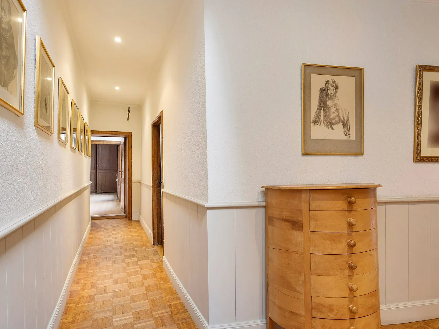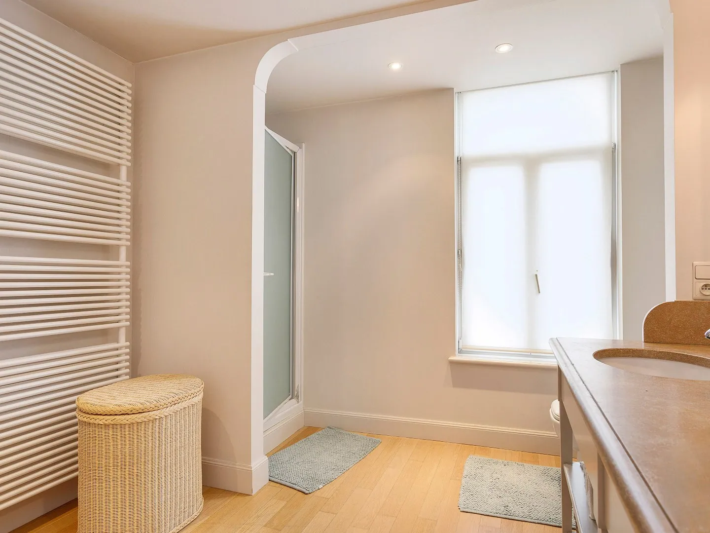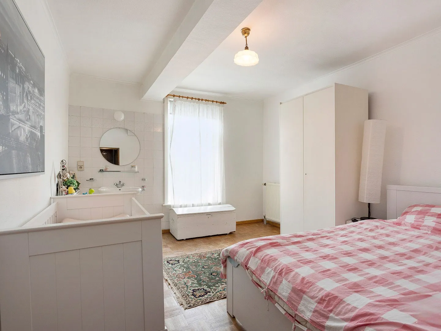 Op de eerste verdieping bevinden zich 4 slaapkamers. Verder is er ook nog een badkamer met douche, toilet, ingebouwde kasten & twee wastafels verwerkt in een meubel.