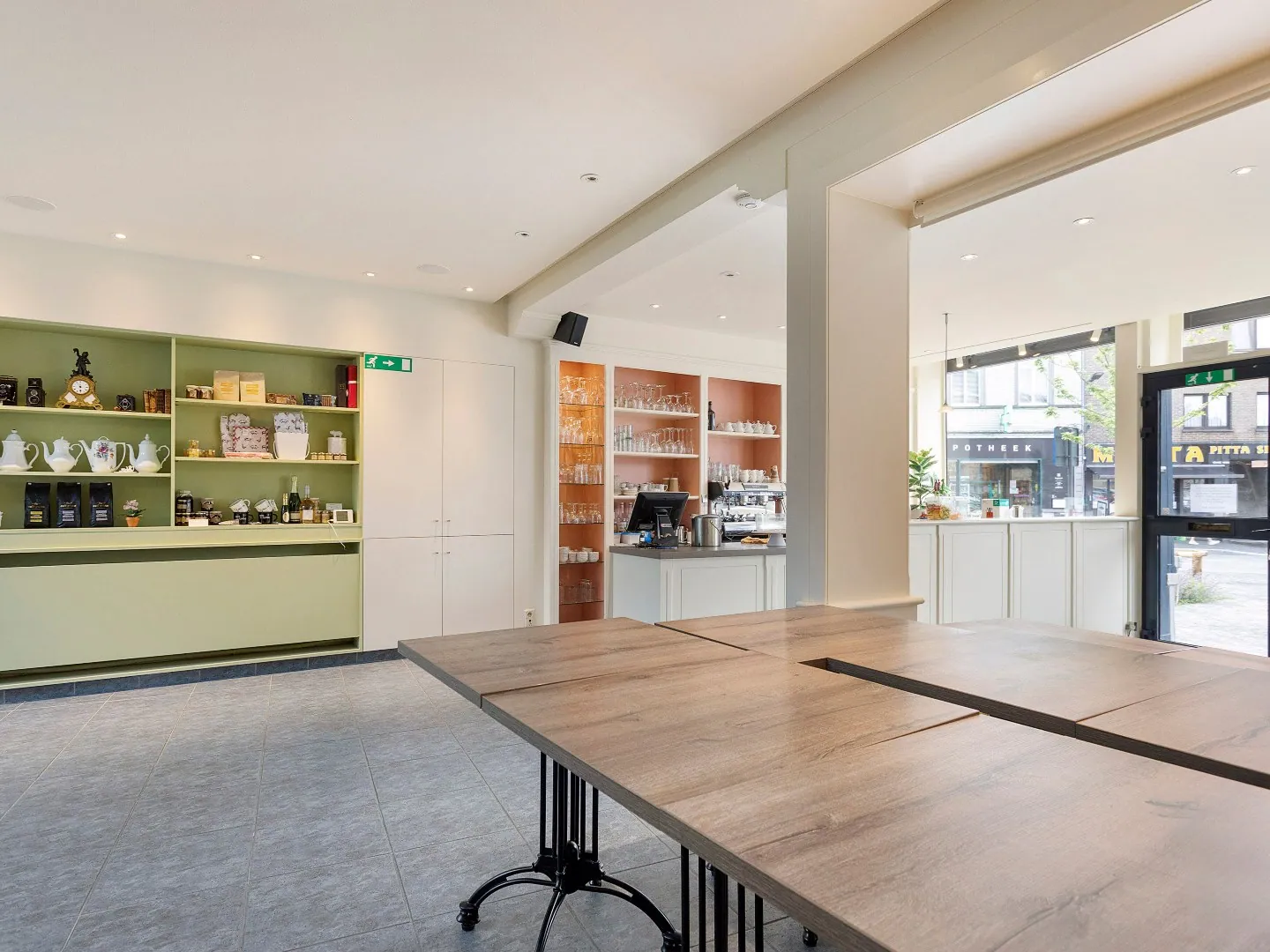Beneden vind je een charmante zaak, gelegen op de Markt, en achterliggend werd de woonst ingericht.