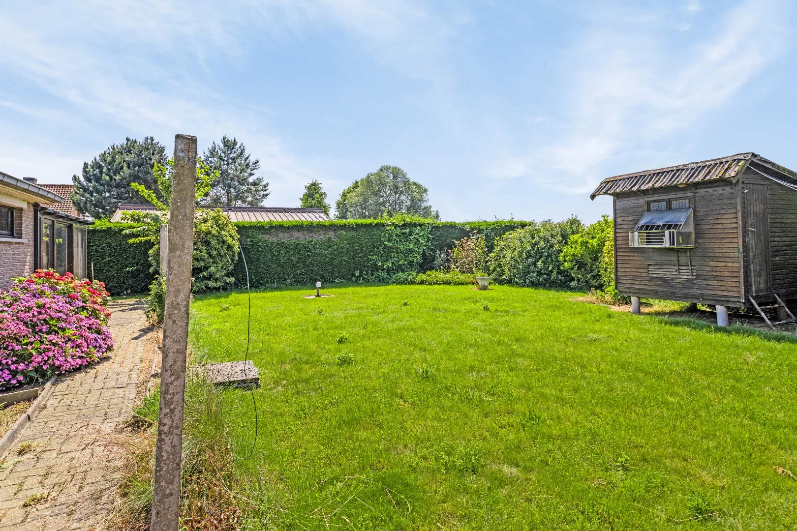 De zeer rustige, maar toch vlot bereikbare ligging, de mooie grote tuin en de logische indeling van de woning zijn maar enkele van de vele troeven die we hier terugvinden.