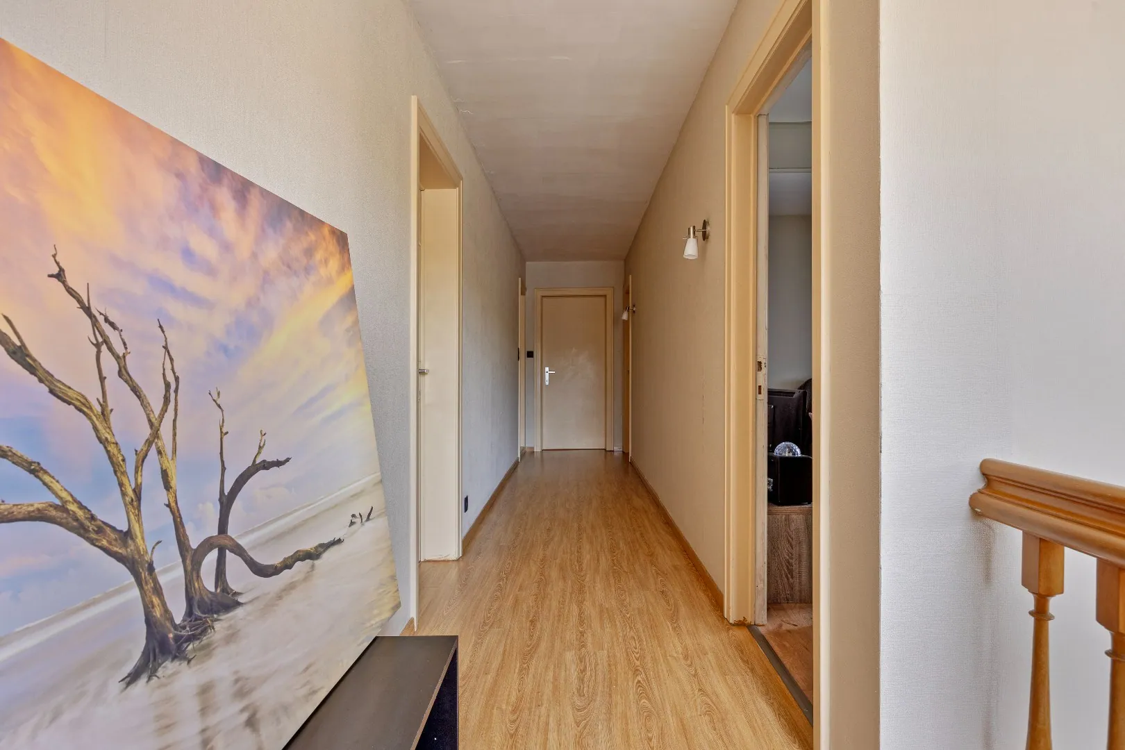 Op de eerste verdieping kom je boven in de grote nachthal (11 m²). Van hieruit heb je toegang tot vier zeer ruime slaapkamers (14, 18, 19 en 23 m²) en de badkamer.