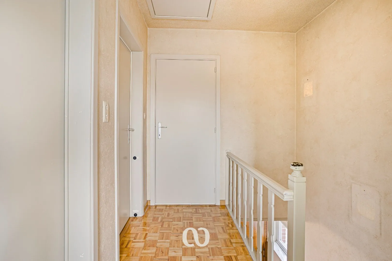 Eerste verdieping: Via de nachthal kom je op het eerste verdiep met toegang tot twee ruime slaapkamers, een kleinere kamer die perfect kan dienen als bureau of dressing, en een badkamer.