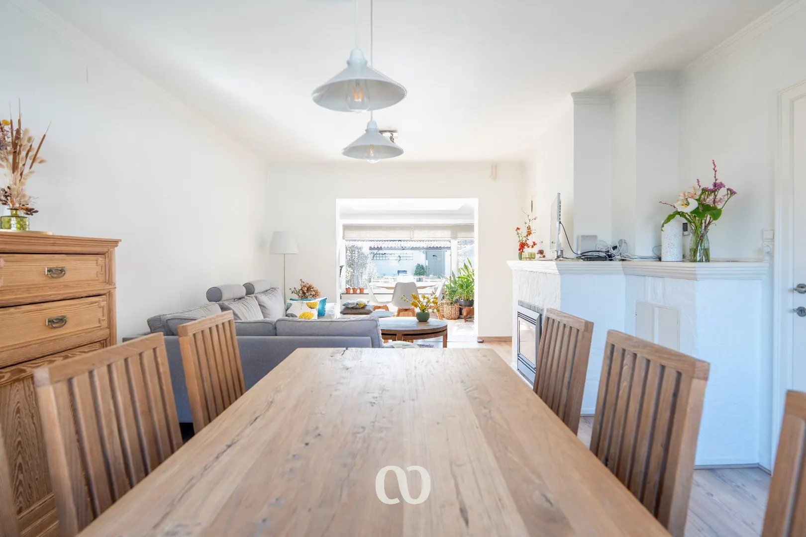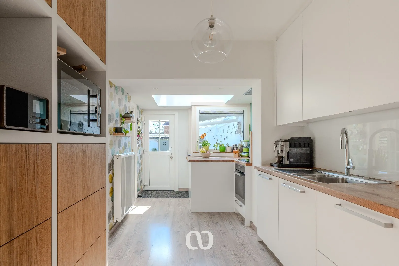 Je komt de woning binnen via de ruime inkomhal. Van hieruit heb je toegang tot de lichtrijke living, die dankzij de open indeling mooi aansluit op de volledig uitgeruste keuken. De keuken beschikt over moderne toestellen en biedt voldoende opbergruimte. Aansluitend is er een gastentoilet.