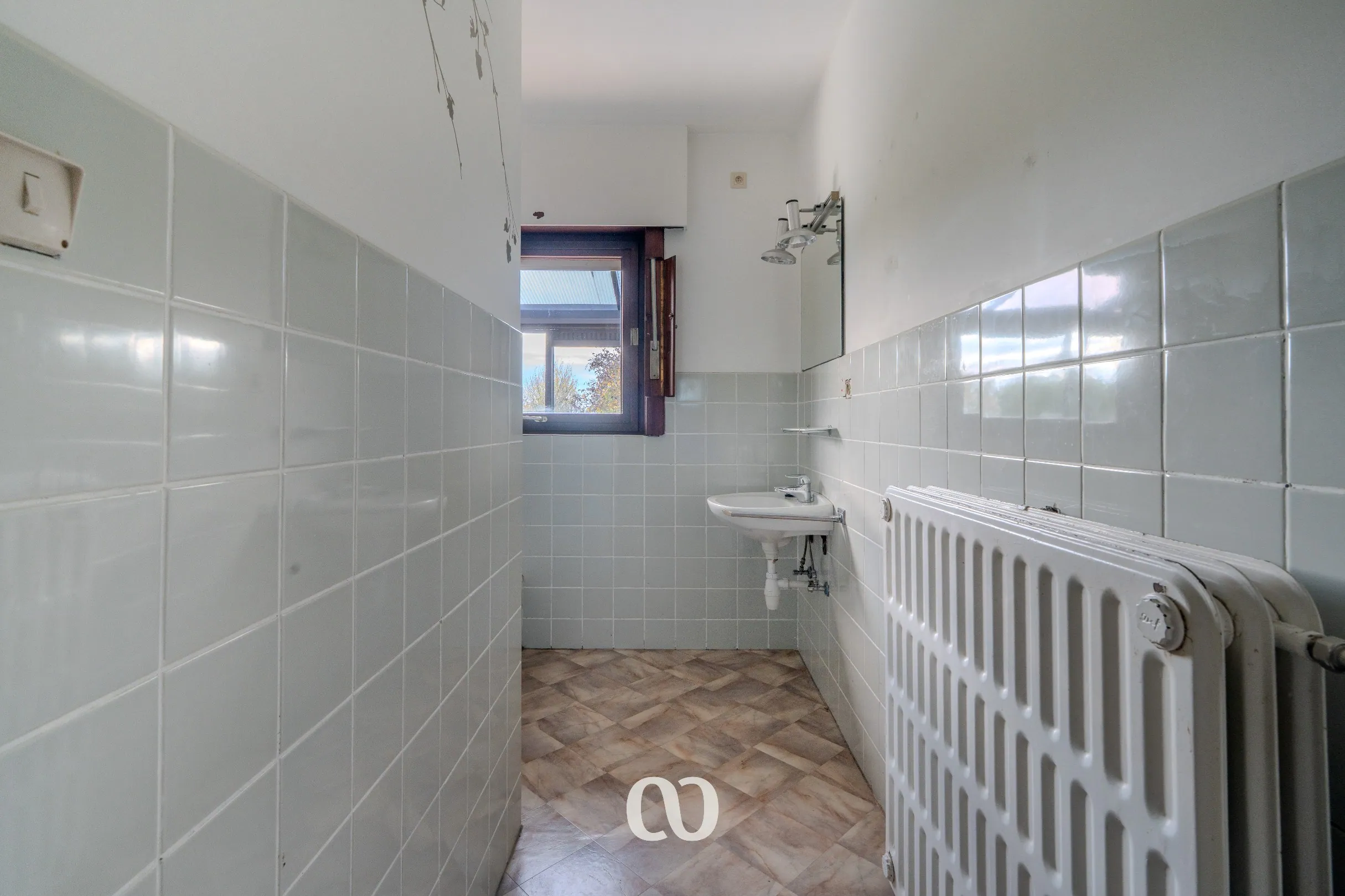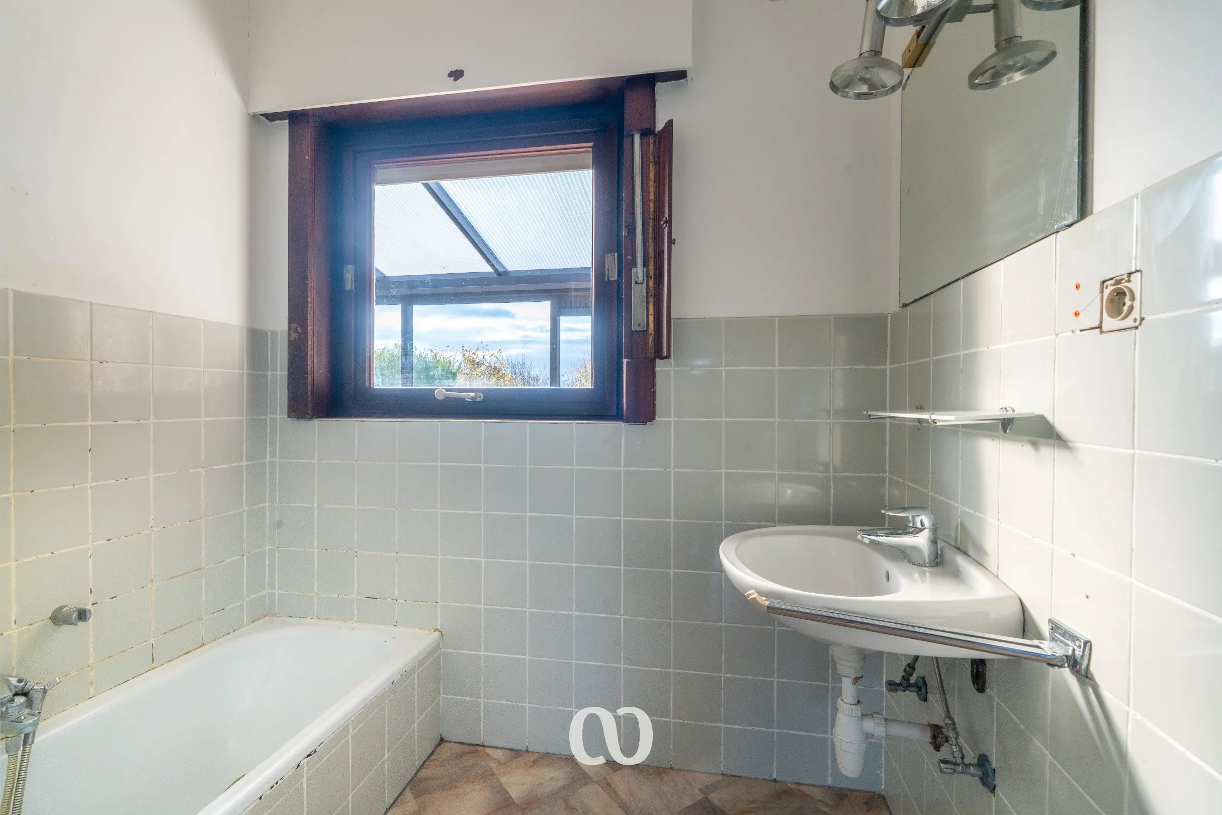 Via de inkomhal kom je in de lichtrijke leefruimte die naadloos overloopt in de keuken. Aansluitend bevindt zich een gezellige veranda waar je tot laat op de avond van de zon en het uitzicht kan genieten. Verder beschikt het gelijkvloers over twee slaapkamers, een badkamer, een apart toilet en een handige inpandige garage.