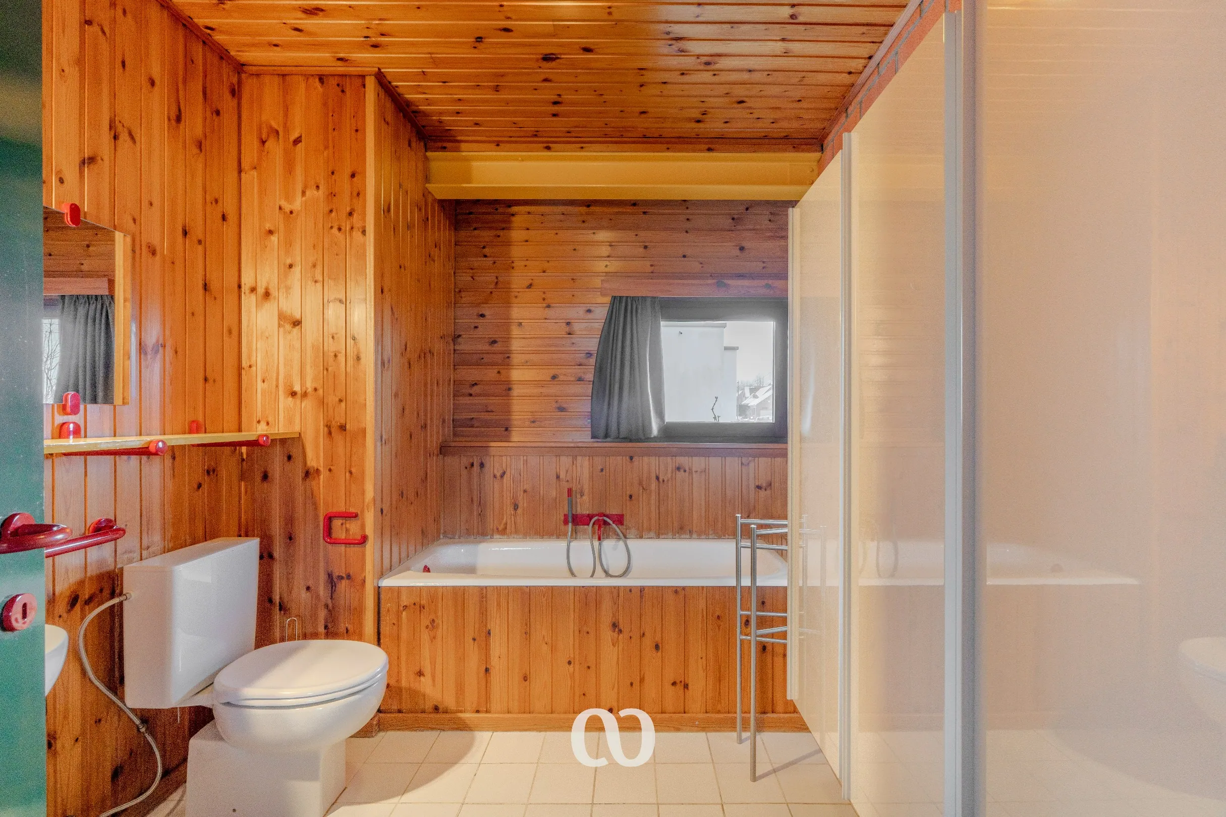De tuin is een absolute troef en vormt een mooi verlengstuk van de woning. Dankzij de slimme aanleg geniet je hier van verschillende terrassen, open graspartijen en veel groen. Het grote houten terras nodigt uit om in alle rust te genieten van lange zomeravonden, met een prachtig uitzicht op de omgeving.