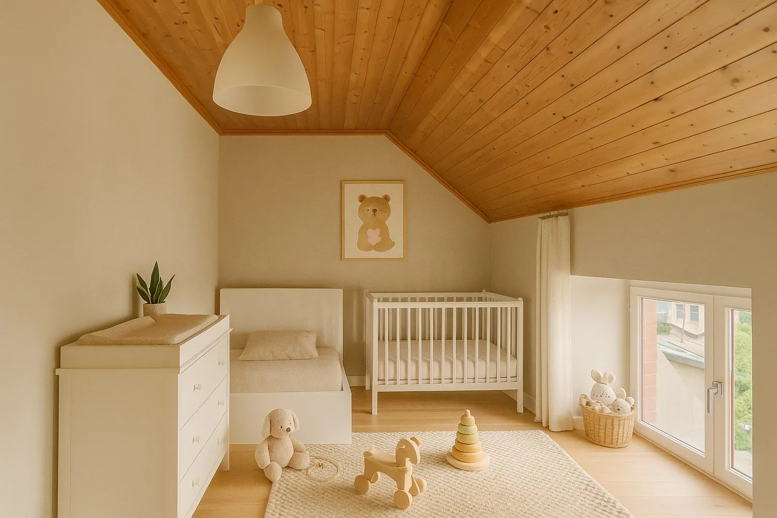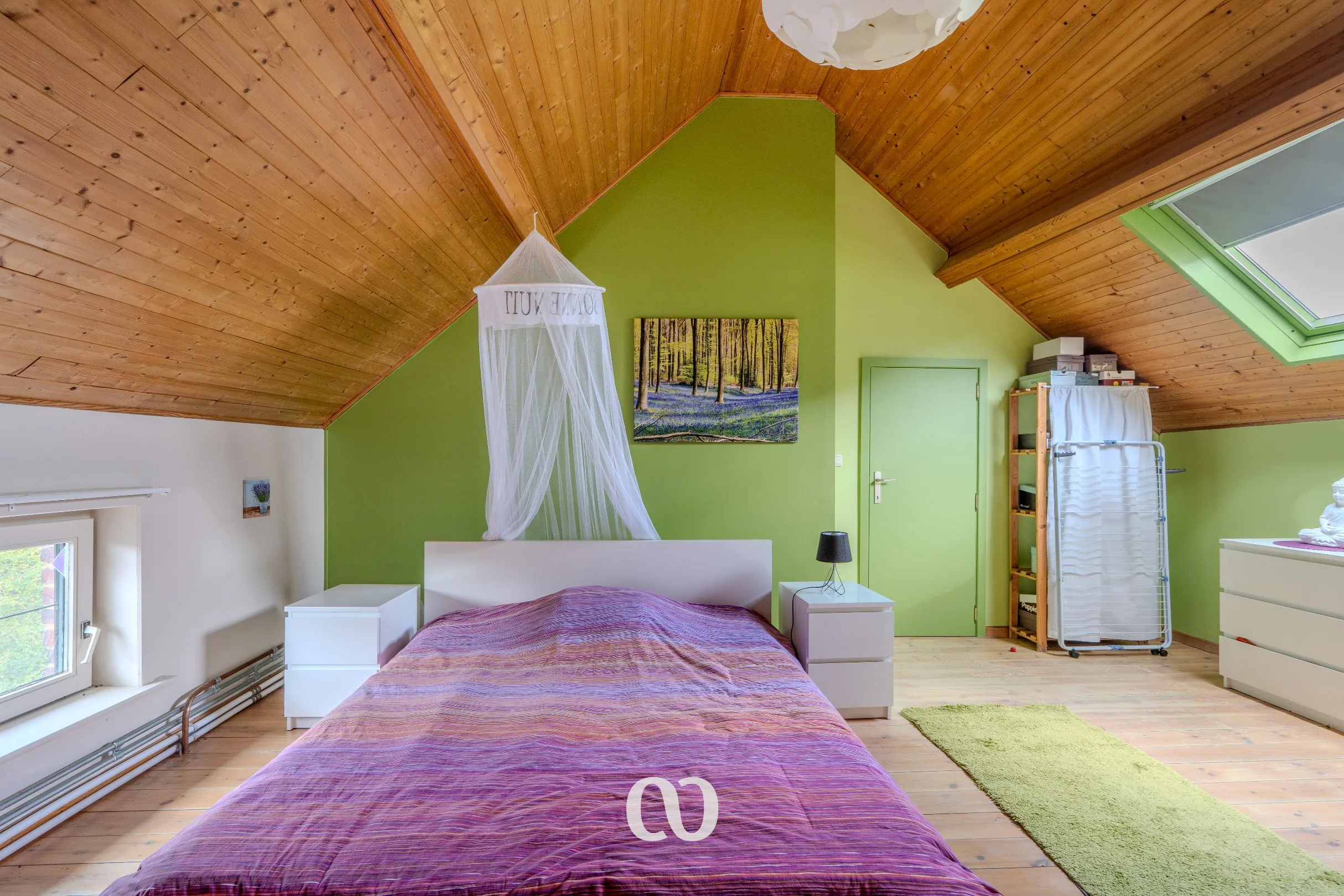 -1steV: De nachthal geeft toegang tot twee slaapkamers waarvan één zeer ruim is. Er is tevens nog een zolderkamer waar makkelijk een derde kamer gecreëerd kan worden.