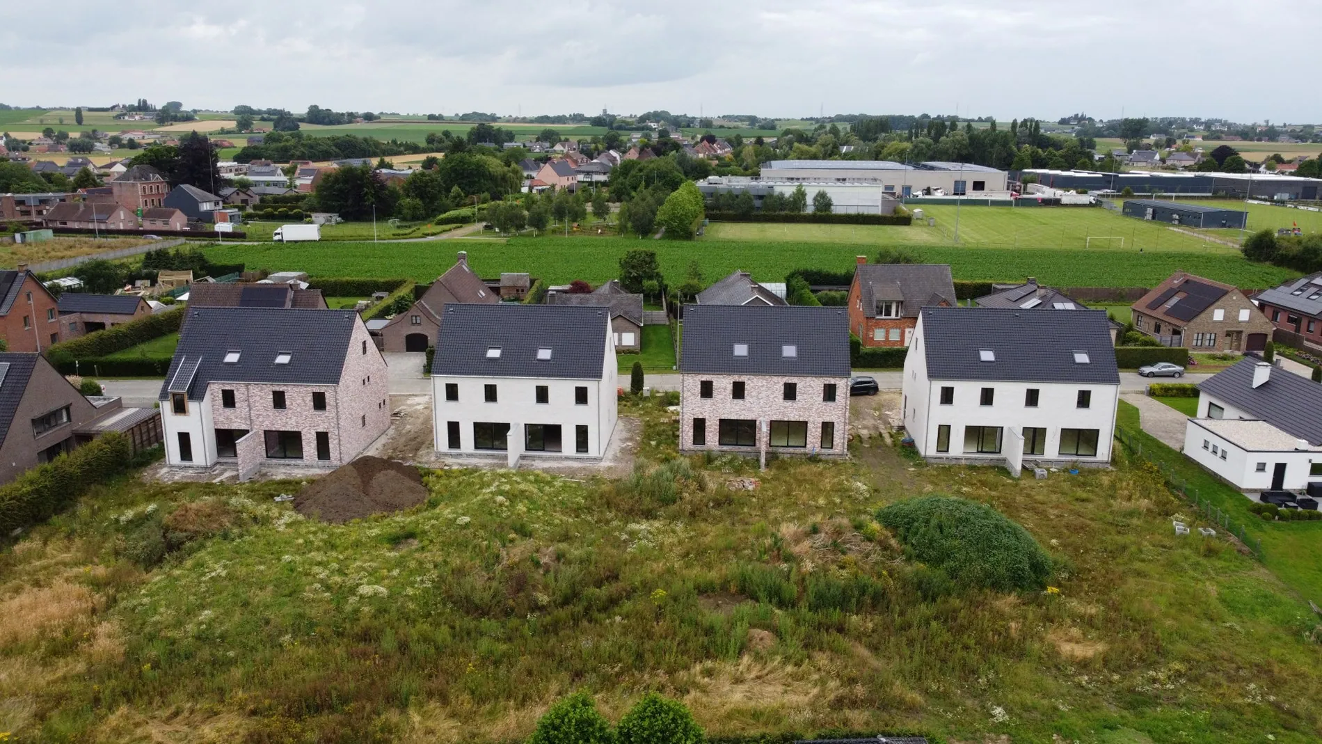 Lot 3 bestaat uit een halfopen bebouwing met vier comfortabele slaapkamers op een terrein van 570 m²