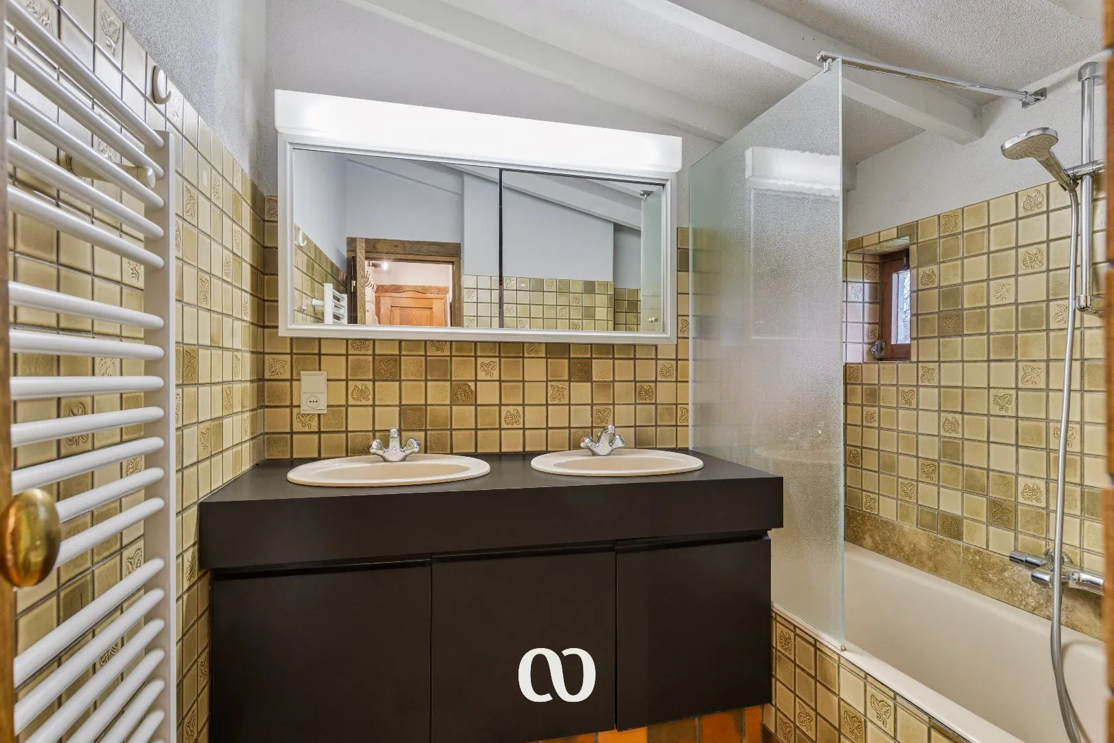 Het charmante bijgebouw biedt extra woonruimte en beschikt over een tweede, ruime slaapkamer, een aparte living en een badkamer, ideaal voor gasten, een praktijkruimte of andere mogelijkheden.